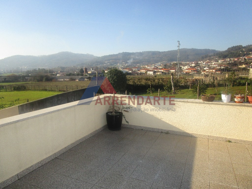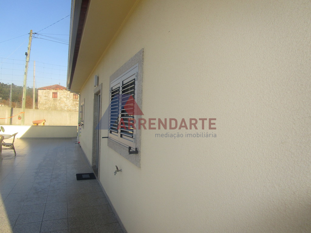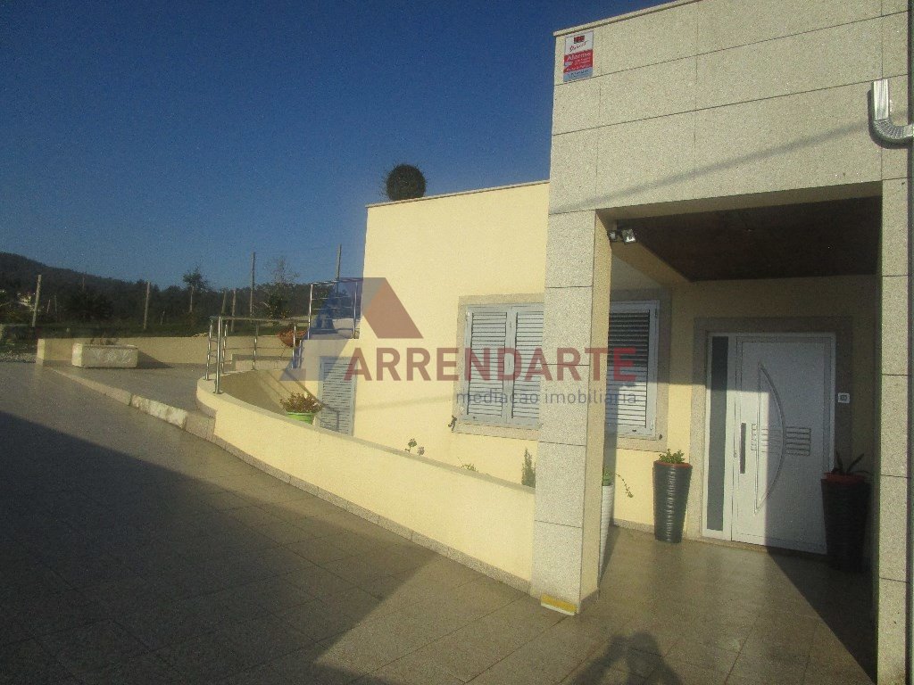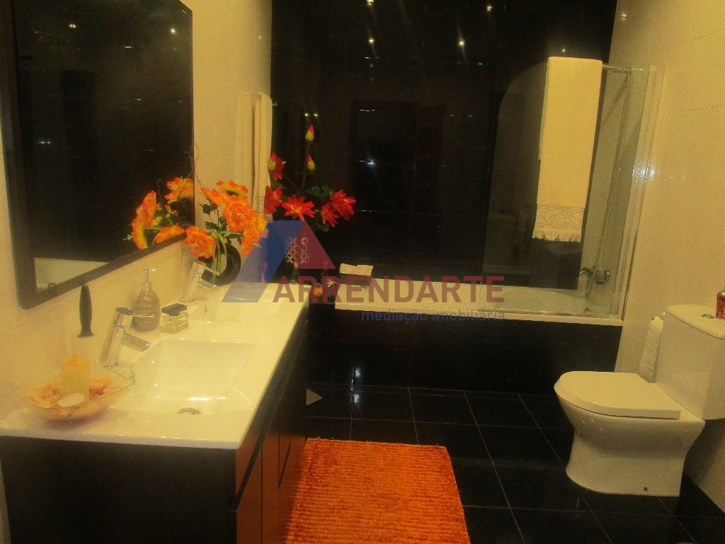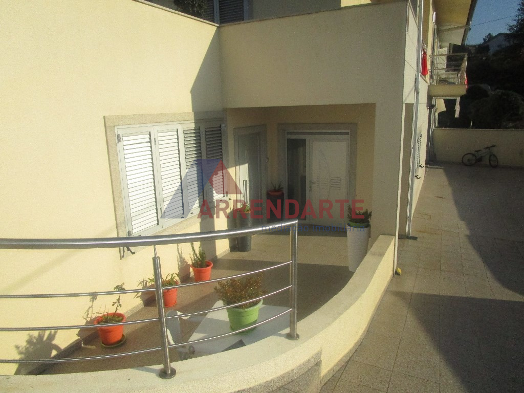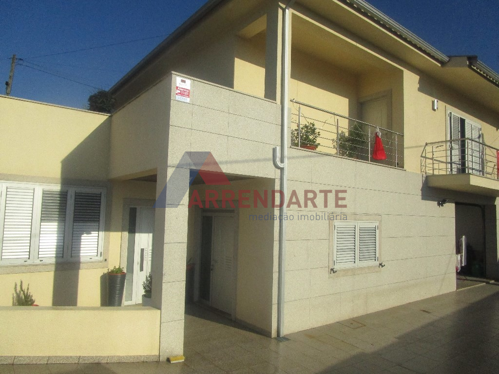 Moradia Geminada T3, com 2 Pisos e Logradouro com Jardim e diversas Árvores de Fruto, Lavandaria, Suite com Closet, Ar Condicionado, Aspiração Central, Garagem com espaço para 4 Viaturas, 2 Cozinhas Mobiladas e Semi Equipadas, Vídeo Porteira e Alarme, Acessos Interiores, Pisos em Granito em Madeira, Caixilharia em Alumínio com Vidro Duplo e Portadas em Alumínio.